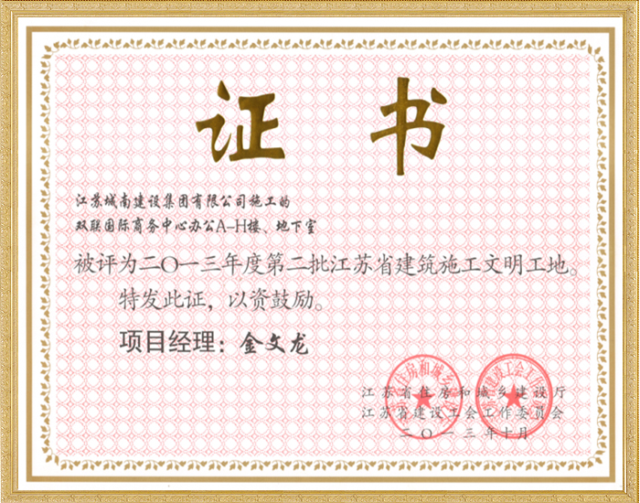 2013年度第二批江苏省建筑施工文明工地—双联国际商务中...