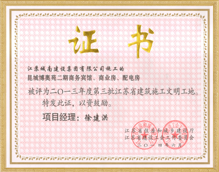 2013年度第三批江苏省建筑施工文明工地—昆城博奥苑二期...