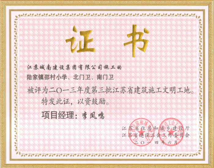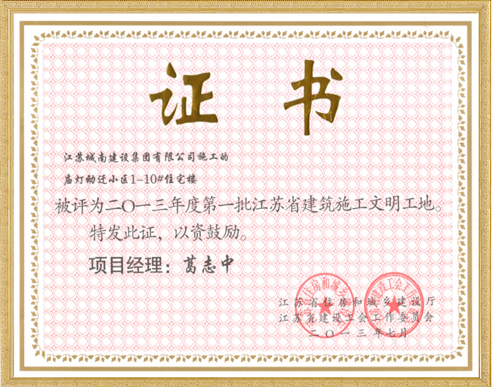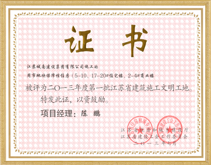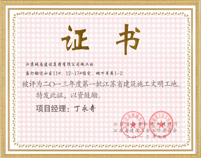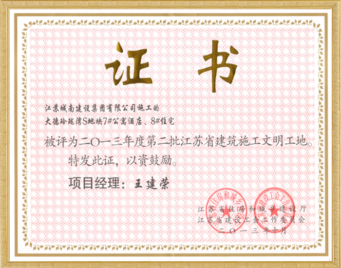 2013年度第二批江苏省建筑施工文明工地—大德玲珑湾S地...