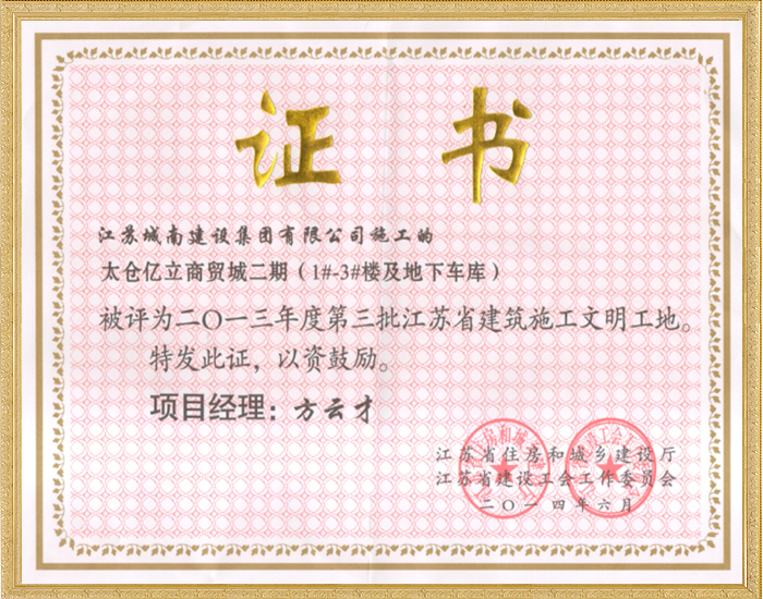 2013年度第三批江苏省建筑施工文明工地—太仓亿立商贸城...