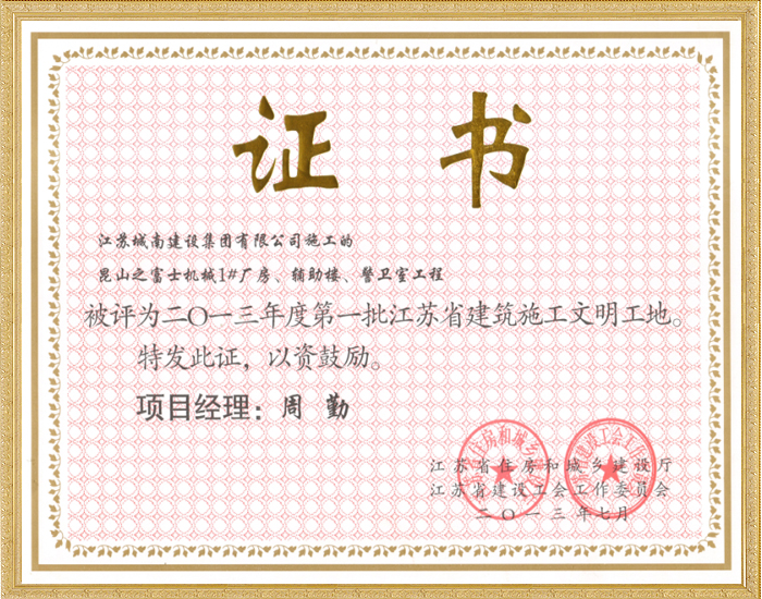 2013年度第一批江苏省建筑施工文明工地—昆山之富士机械...