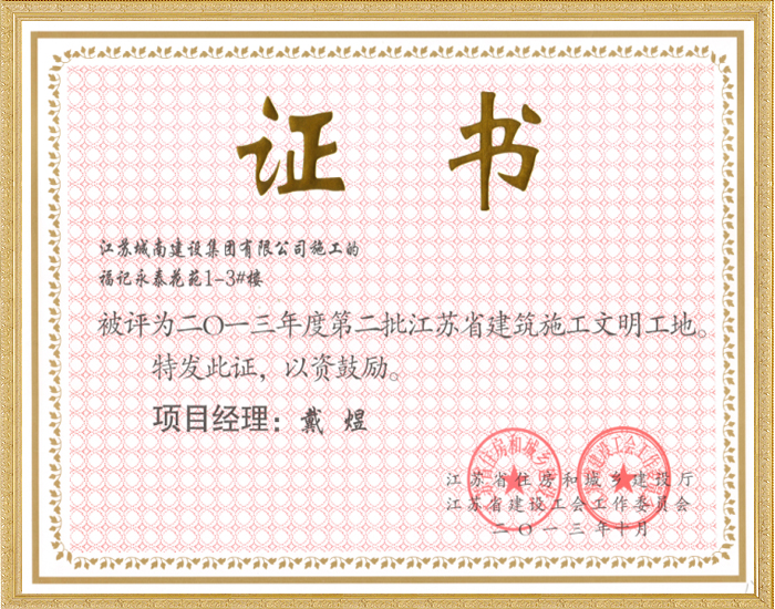 2013年度第二批江苏省建筑施工文明工地—福记永泰花苑1...