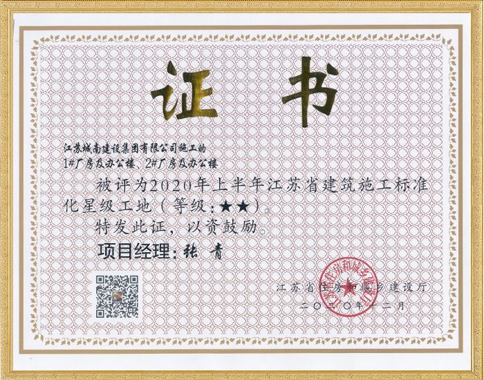 2020年上半年江苏省建筑施工标准化星级工地—1#厂房及...