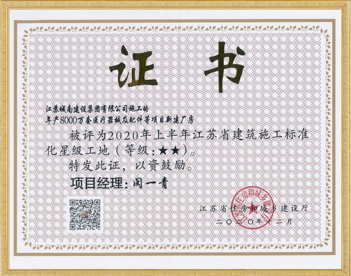 2020年上半年江苏省建筑施工标准化星级工地—年产800...