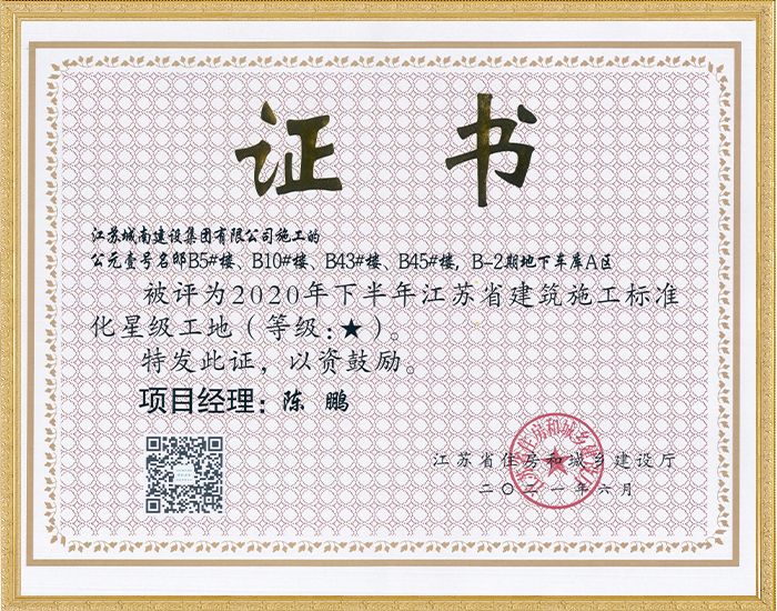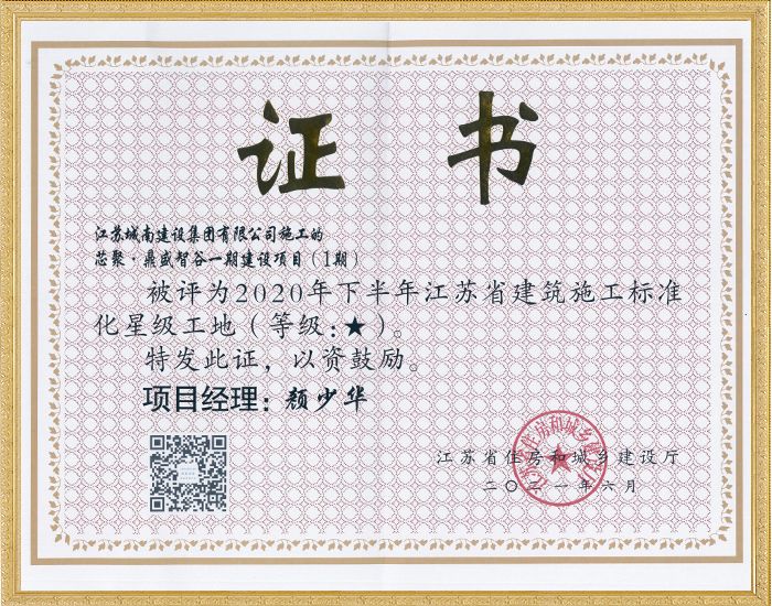 2020年下半年江苏省建筑施工标准化星级工地—芯聚·鼎盛...