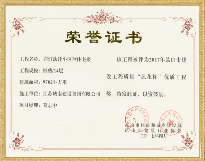 2017年昆山市建设工程质量“琼花杯”优质工程奖—昆山开...