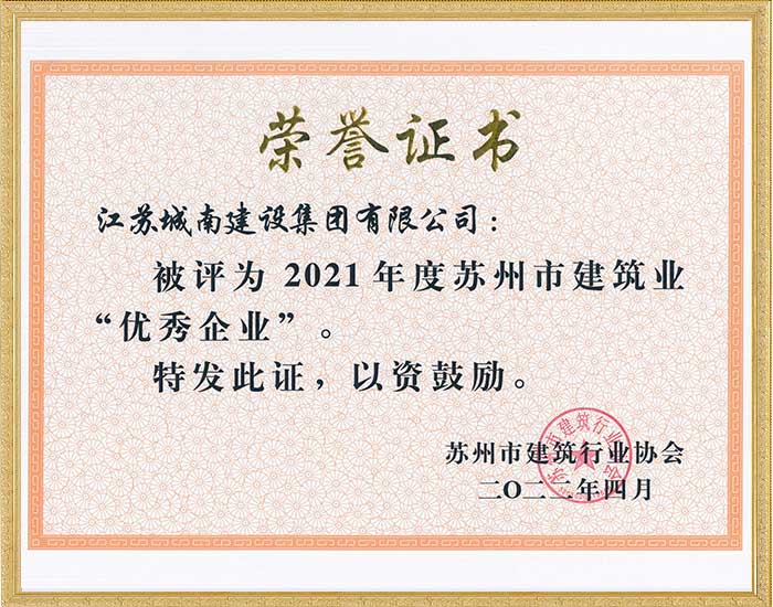 2021年度苏州市建筑业“优秀企业”